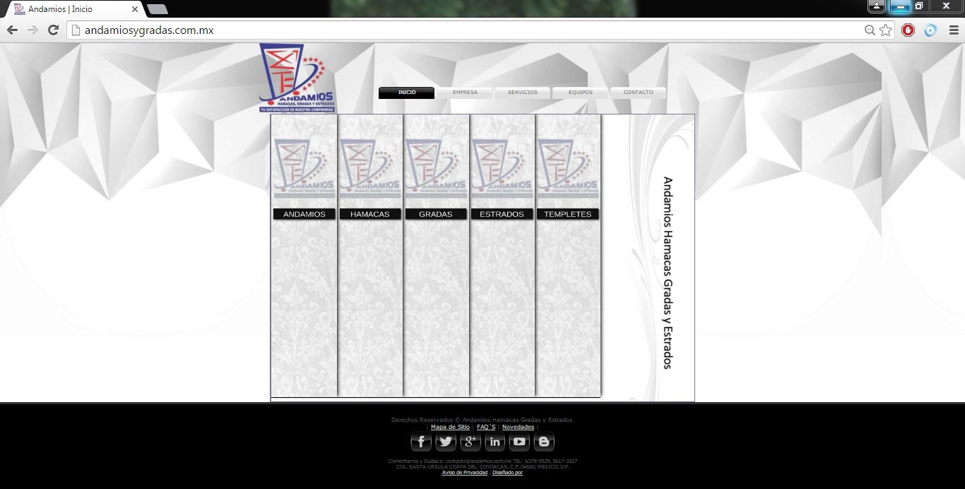 Se realizó el WebSite de la compañía, con su campaña SEO y redes sociales en donde se dieron a conocer sus servicios de venta y renta de andamios, hamacas, estrados entre otros, en galerías y fichas técnicas de dichos servicios.andamiosygradas.com.mx